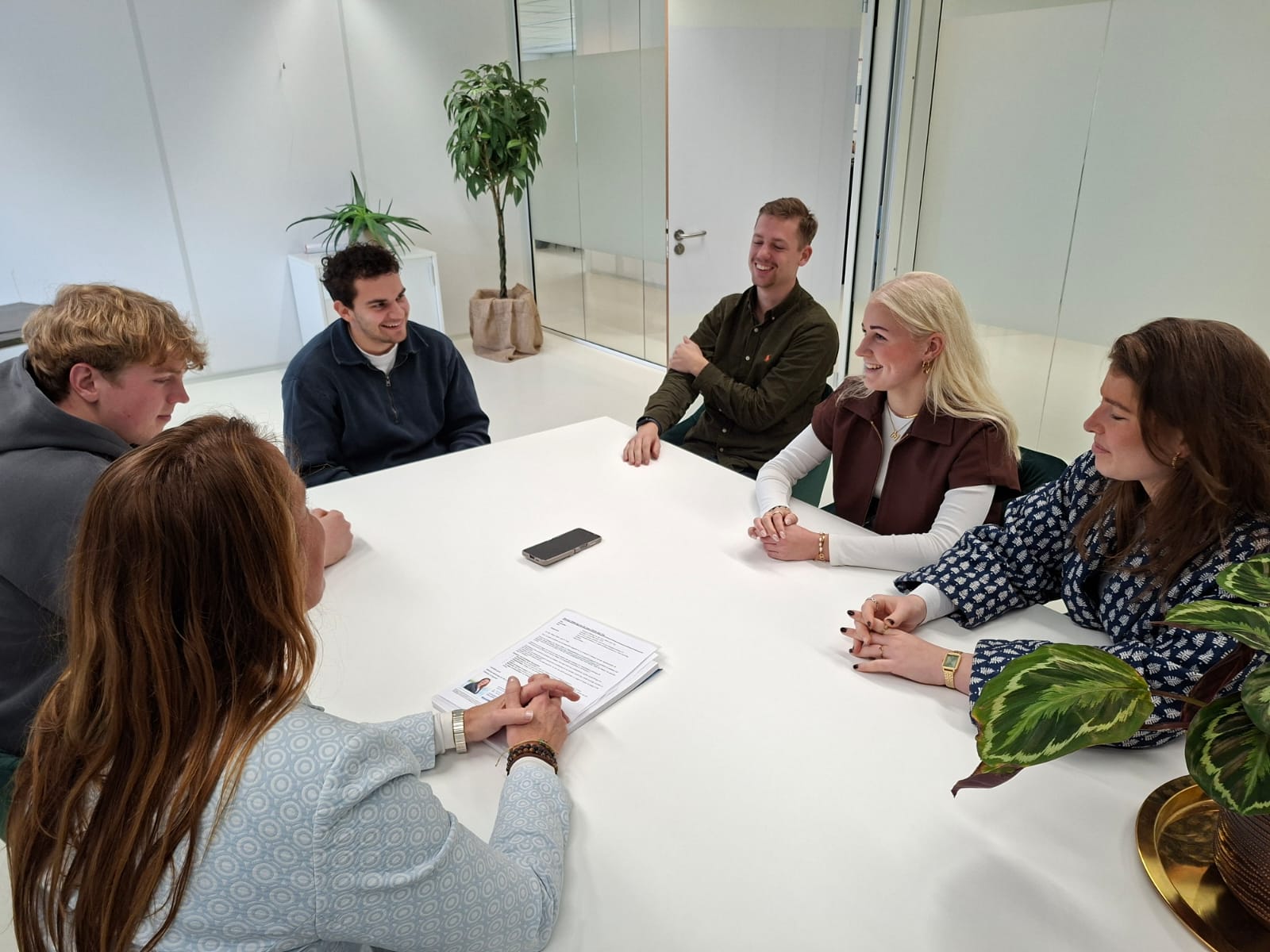 Hij is niet de enige. Samen met vier medestudenten – Tess, Jaydi, Marel en Twan – volgt hij een comakership bij arbodienst Recht Door Zee. Tijdens deze comakership zijn zij 26 weken 1-2 dagen per week aanwezig bij Recht Door Zee en voeren samen een opdracht uit. Allemaal combineren ze werk, school en comakership. Toch ervaren ze zelf weinig werkstress. Hoe kan dat?